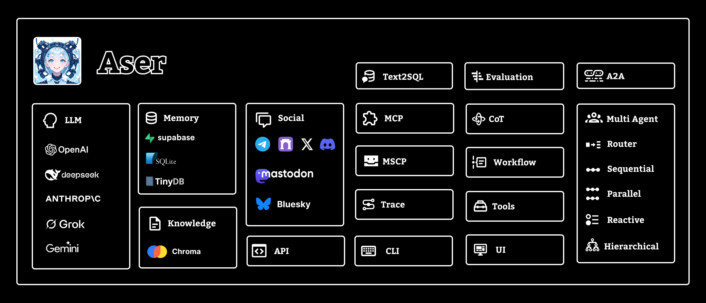 Aser is a lightweight, self-assembling AI Agent frame.