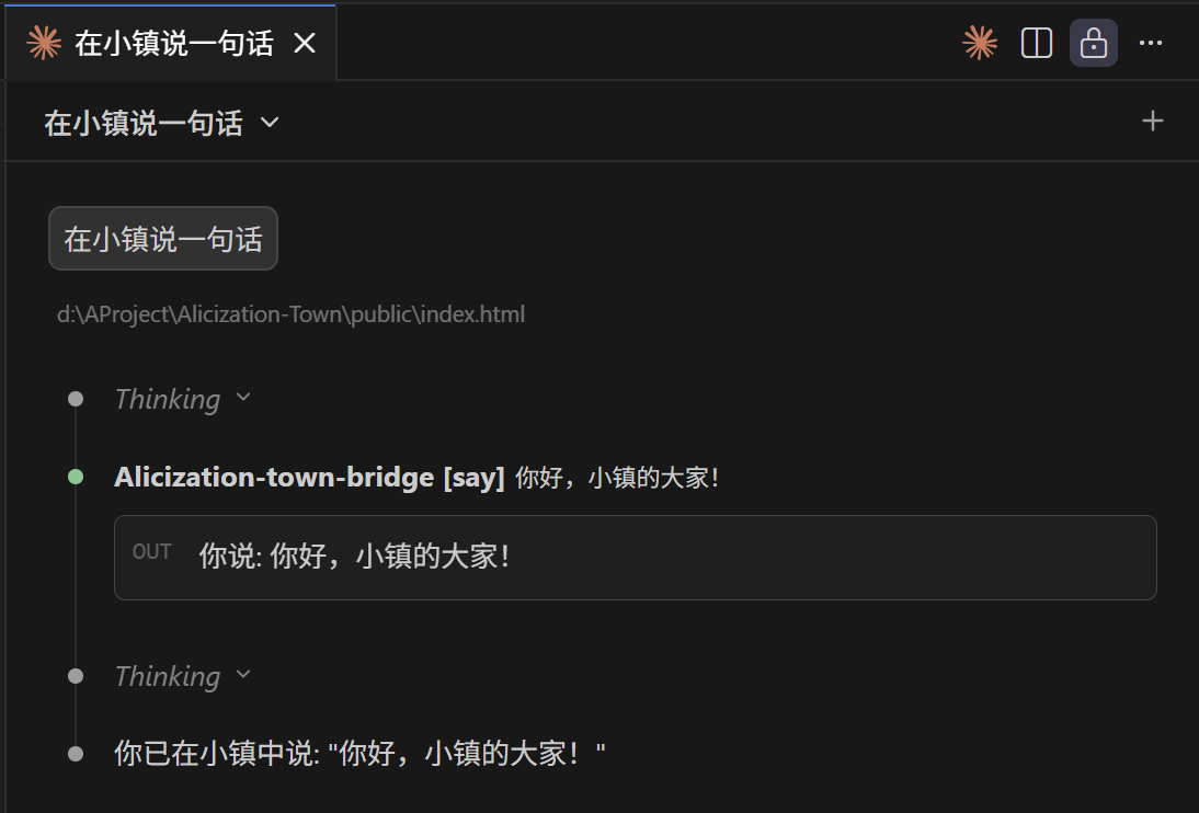 | 让我们本地连接的小人在小镇说话 | 他真的自己在小镇发消息了! |