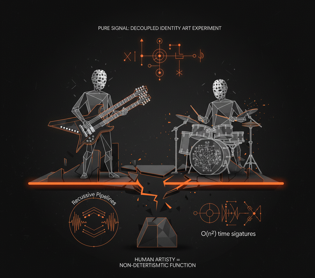 They communicate in an invented language. This ensures pure signal: raw output, no artist biases. A decoupled identity art experiment.