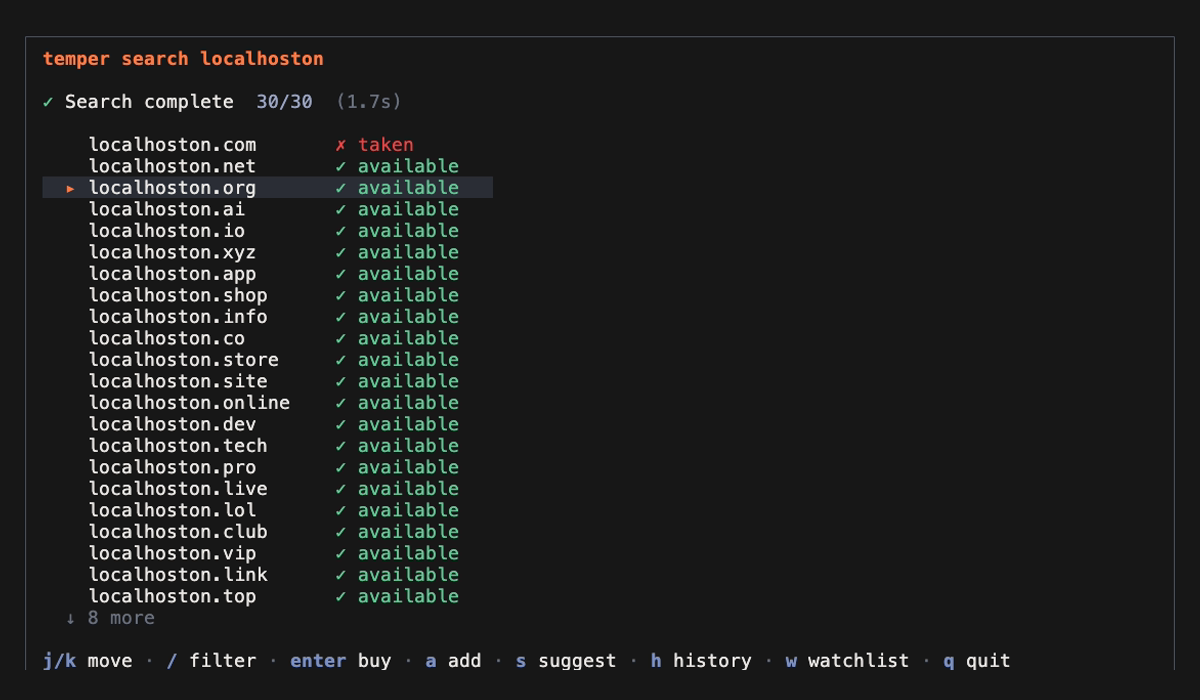 temper fixes this. One command. 30 TLDs. Under 2 seconds.