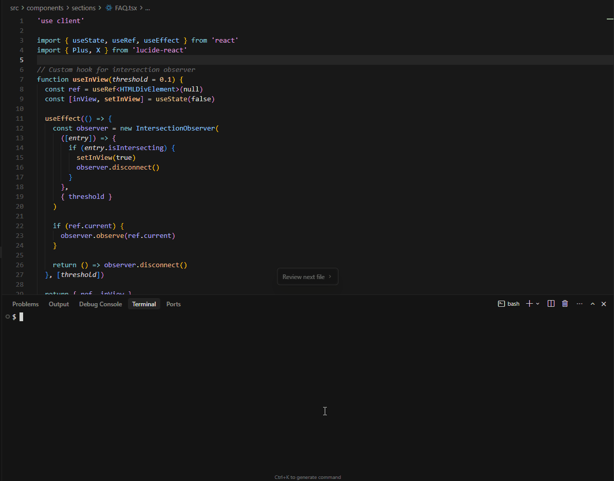 .ts/.tsxonly (JavaScript is not yet analyzed). Frameworks, UI libraries, and limits: Framework support.