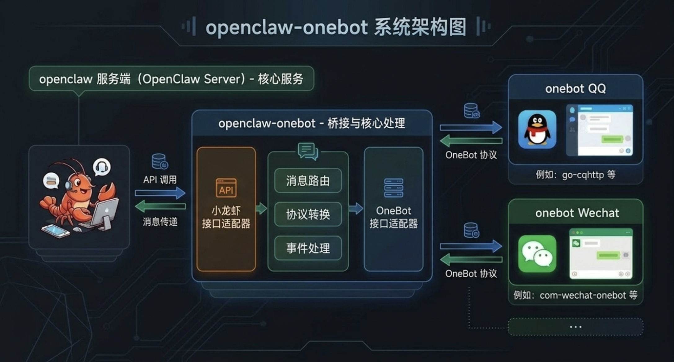 小龙虾 openclaw 的 onebot 接入框架,可用于接入 QQ