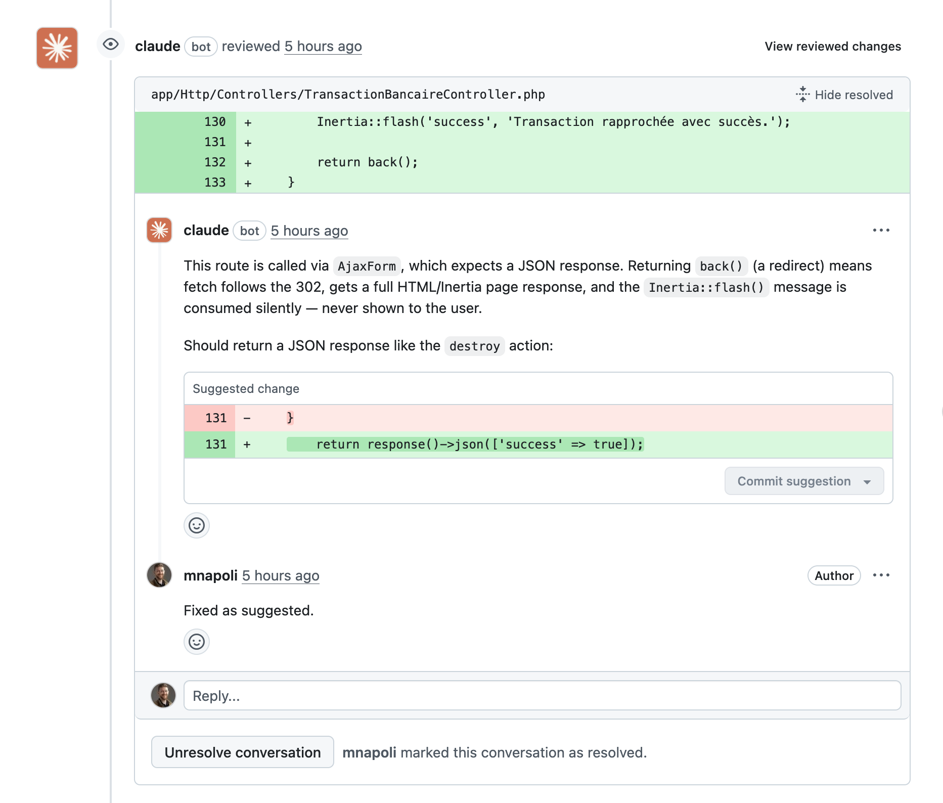 - Review Claude and Codex's comments and "mark as resolved" those that don't make sense