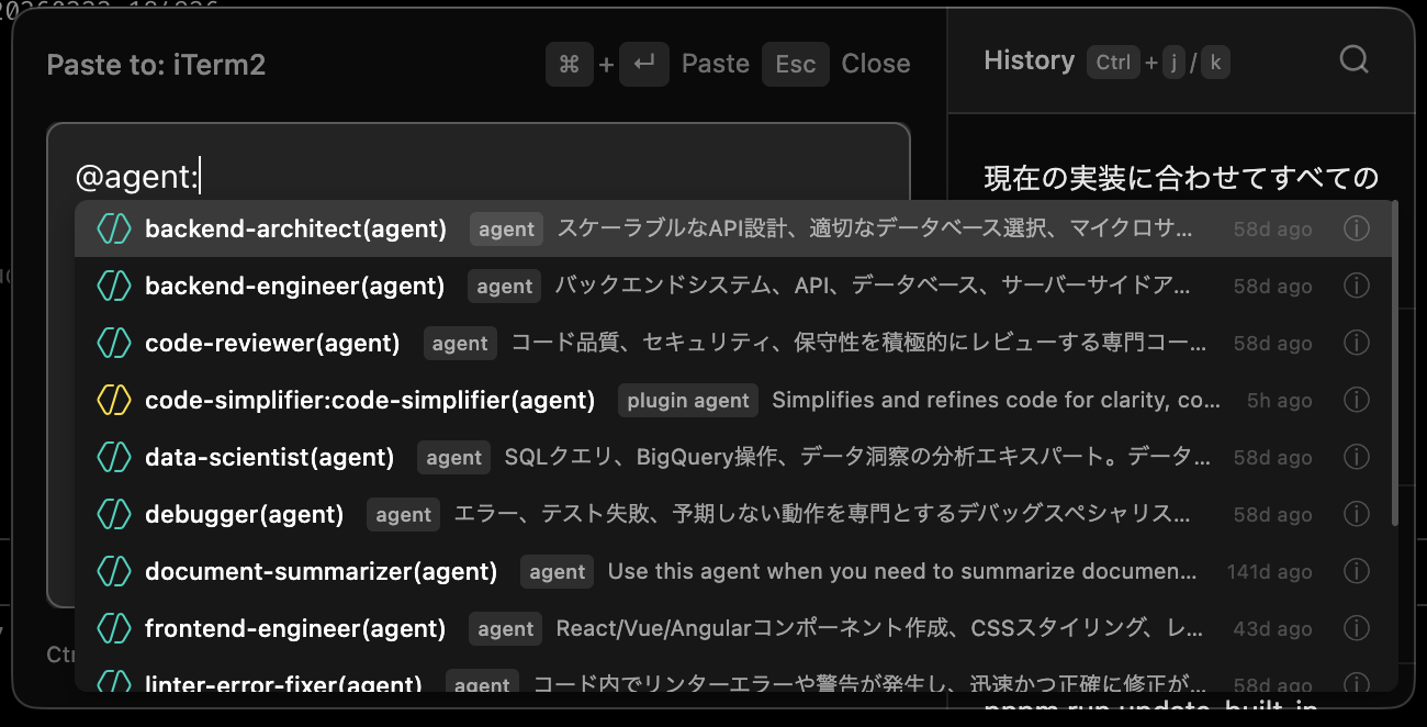 shortcuts Keyboard shortcuts (main, paste, close, history navigation, search)